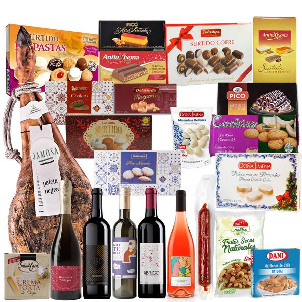 1 PALETA IBÉRICA RAZA NEGRA S/N “LINAJE NEGRO JAMOSA” 4 KG APROX 1 PIEZA DE CHORIZO VELA BELLOTA IBÉRICO DEHESA DEL YELTES 150 GR 1 BOTELLA DE CAVA HACIENDA MILAGRO 70 CL 1 BOTELLA DE VINO TINTO ORO 70 CL 1 BOTELLA DE VINO TINTO ABRIGO 70 CL 1 BOTELLA DE VINO BLANCO GRITERÍO 70 CL 1 BOTELLA DE VINO ROSADO CORTIJO 70 CL 1 ESTUCHE SURTIDO MINI TURRONES ANTIUXIXONA 150 GR 1 BARRA DE TURRÓN YEMA TOSTADA ALTA SELECCIÓN PICÓ 150 GR 1 BARRA DE TURRÓN CHOCOLATE CRUJIENTE ANTIUXIXONA 125 GR 1 ESTUCHE SURTIDO COFRE CHOCOLATE DULCESTEPA 150 GR 1 ESTUCHE ALMENDRAS RELLENAS DOÑA JIMENA 80 GR 1 LATA DE MEJILLONES AL NATURAL RO-120 DANI 111 GR 1 ESTUCHE COOKIES CON PEPEITAS DE CHOCOLATE E. MORENO 100 GR 1 ESTUCHE SURTIDO ARTESANO HALAL LA UNIÓN 200 GR 1 ESTUCHE FIGURITAS DE MAZAPÁN DELAVIUDA 200 GR 1 ESTUCHE PASTAS SURTIDAS LA CAÑADA 400 GR 1 ESTUCHE BARQUILLOS BAÑADOS AL CACAO PICÓ 75 GR 1 PAQUETE DE FRUTOS SECOS COCKTAIL FRUYPIS 93 GR 1 ESTUCHE COOKIES DE COCO EN ACEITE DE OLIVA GAMITO 120 GR 1 ESTUCHE FLORES NEVADAS DULCESTEPA 100 GR 1 ESTUCHE POLVORÓN DE ALMENDRA DOÑA JIMENA 100 GR 1 PATÉ CREMA DE OVEJA FLORES DESHIDRATADAS DEL PARAÍSO INDALITOS 70 GR 1 PAPELETA PARA EL “SORTEO DE UNA BICICLETA VALORADA EN 2.500 €” 1 PAPELETA PARA EL “SORTEO DIRECTO DE 1.200 €” 1 PARTICIPACIÓN DE LOTERÍA DE NAVIDAD DE 0,50 €